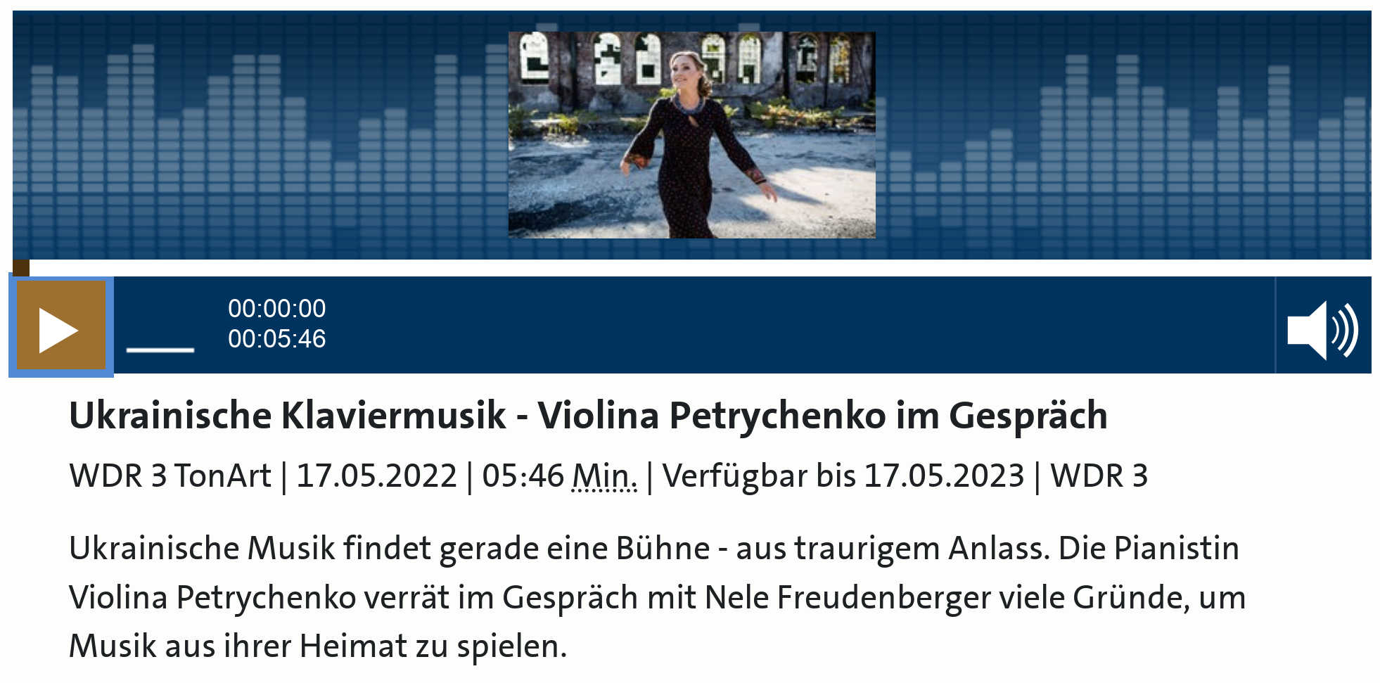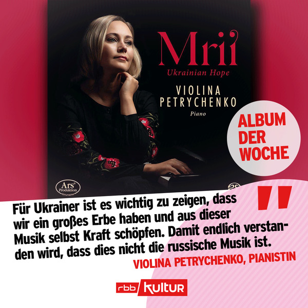 Die ukrainische Pianistin Violina Petrychenko, geboren in Saporischschja, studierte in Kyjiw, Weimar, Köln und Essen und wurde mit mehreren internationalen Preisen ausgezeichnet. Sie lebt in Köln und ist zugleich Solistin der Lemberger Philharmonie. Als Solistin und Kammermusikerin konzertiert sie regelmäßig in Europa und in der Ukraine und gastiert auf bedeutenden Festivals.
